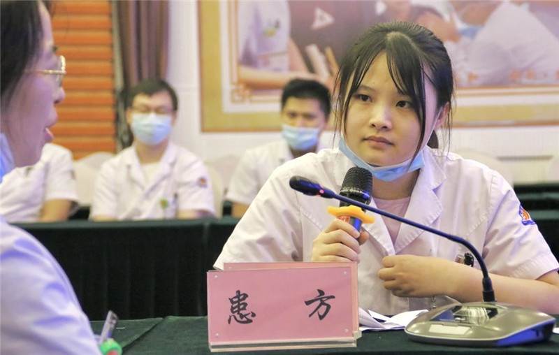 在第二項(xiàng)“理論考核與醫(yī)患溝通”中,選手們隨機(jī)抽取題目,圍繞具體病例問診技巧、術(shù)前溝通等多方面,通過真實(shí)情景的演繹,展示醫(yī)務(wù)人員在面對(duì)病人時(shí)如何用真心、耐心、愛心換取患者的安心、放心與舒心,展現(xiàn)了我院醫(yī)務(wù)人員的服務(wù)禮儀和專業(yè)水平。